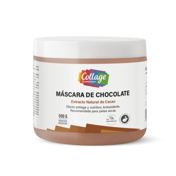 Máscara de Chocolate Con Colágeno, Alantoina, Ácido Hialurónico, Vitaminas A y E. Formulada para tratamientos faciales.Contiene extracto natural de cacao